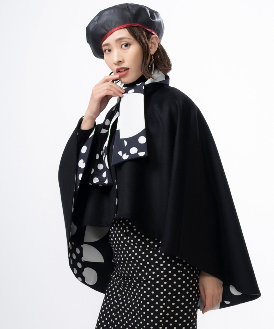 リバーシブルマントコート(マフラー付)