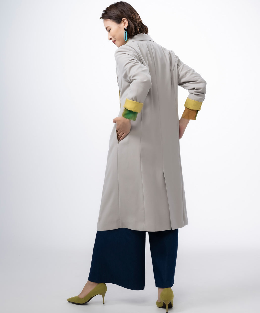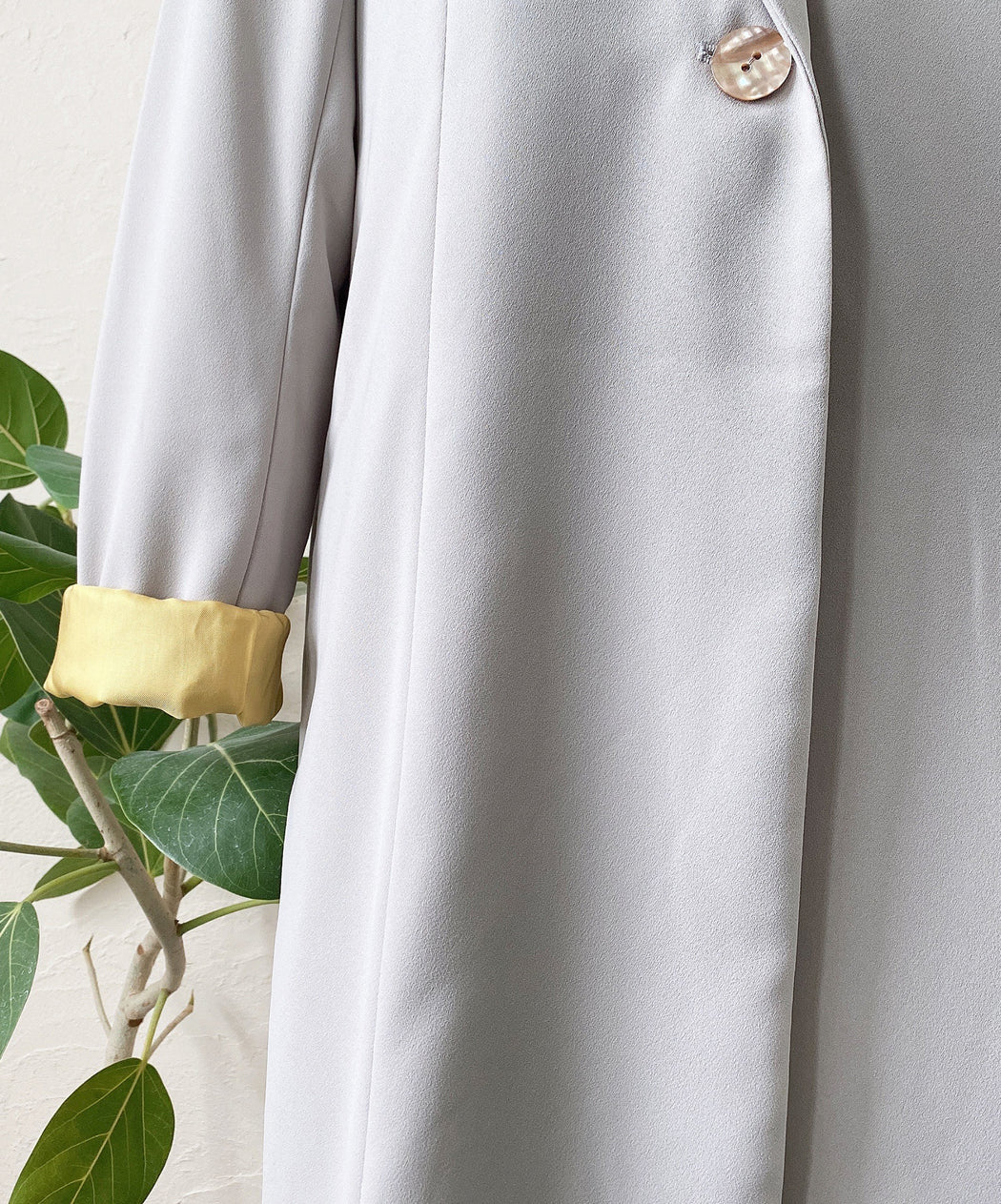何度も何度も修正した広めの襟が女性らしさを感じます。